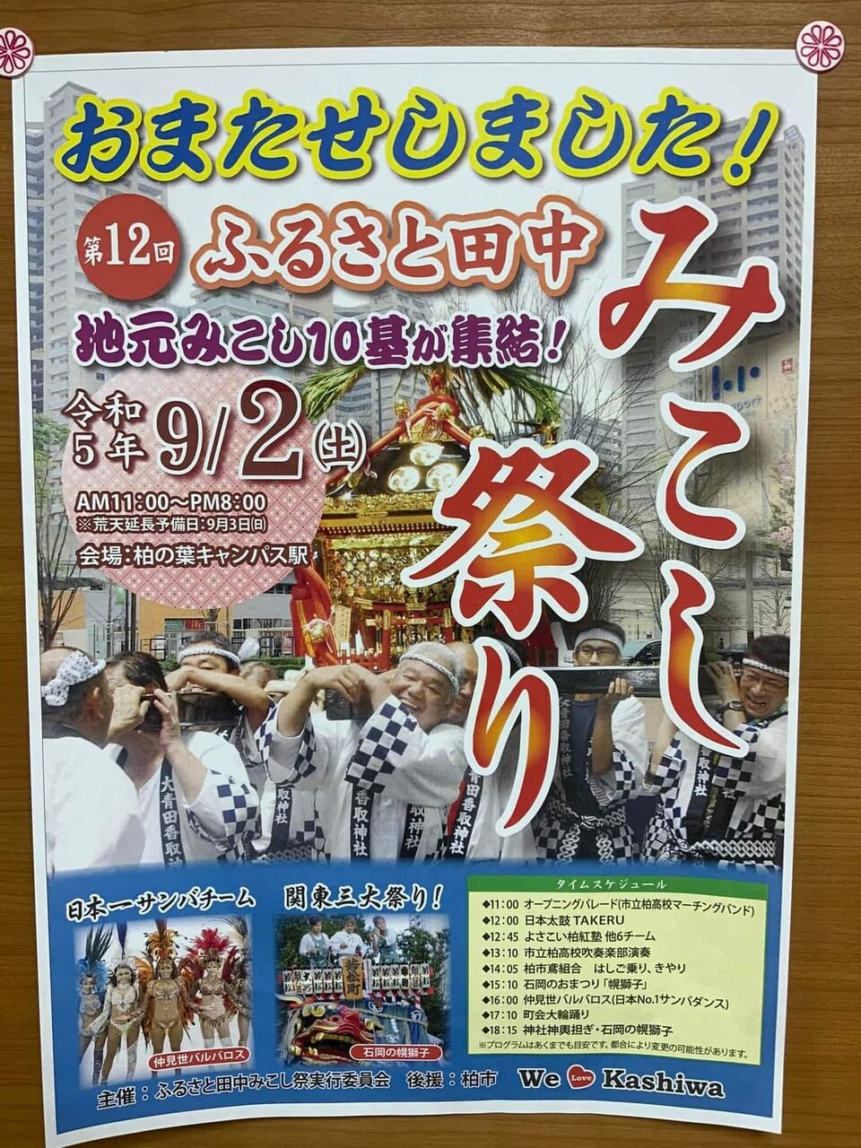 ふるさと田中みこし祭り 祭り&イベント 2023年8月26日 イベント詳細 日付: 2023年9月2日 会場: 柏の葉キャンパス駅 カテゴリ: 祭り&イベント 12:45~13:10演舞順 柏よさこい踊り子隊 姫楽童 沼南よさこゴチャ連 よさこいクラブ千神 よさこい柏紅塾