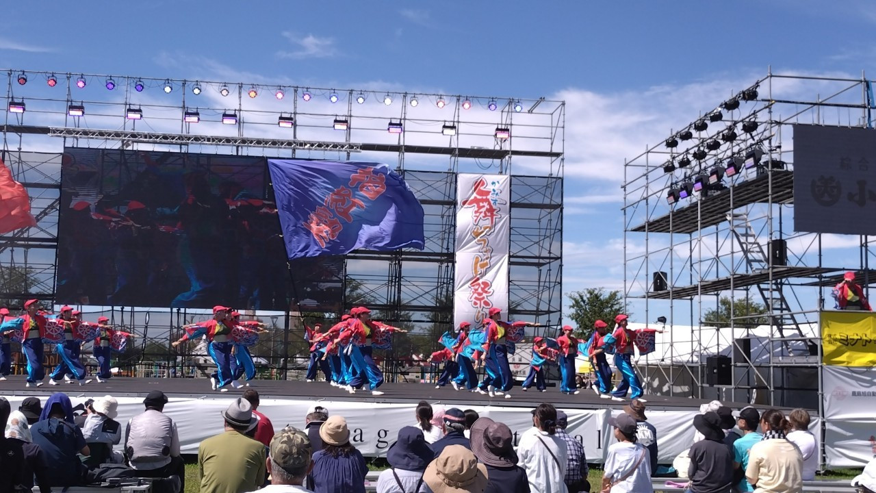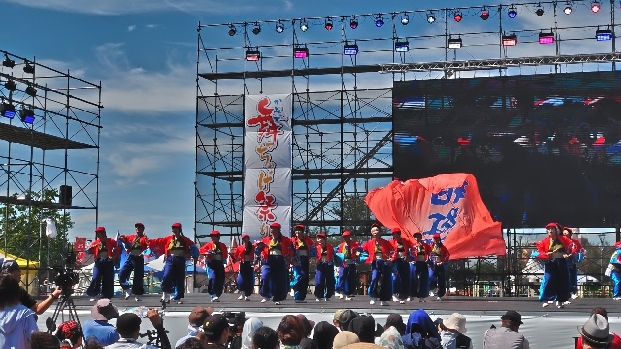 広い神栖中央公園では出店やキッチンカーが数多く出店し、よさこい以外にも歌やダンスパフォーマンスなどもあり大変楽しいお祭りでした。