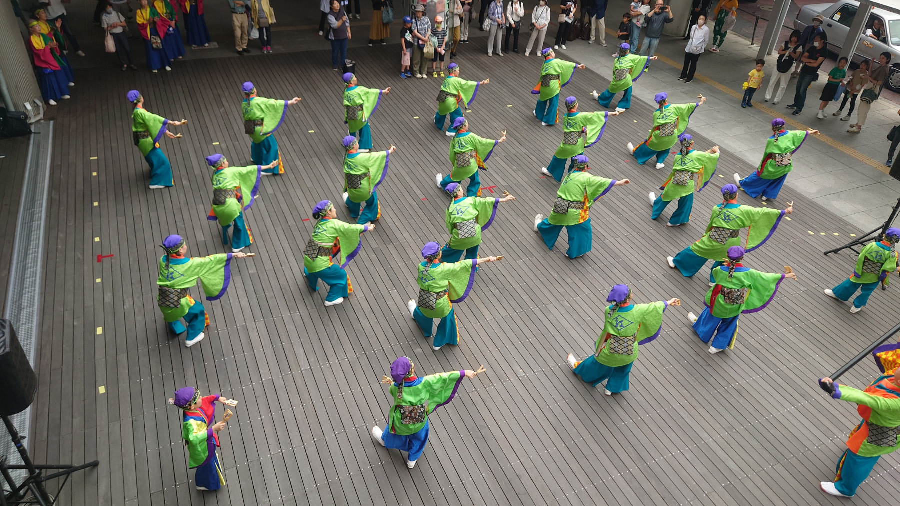 ファミリ柏前広場ではキッズダンスや南京玉すだれ、太鼓など盛りだくさんのパフォーマンスの中私たちも4曲を披露。