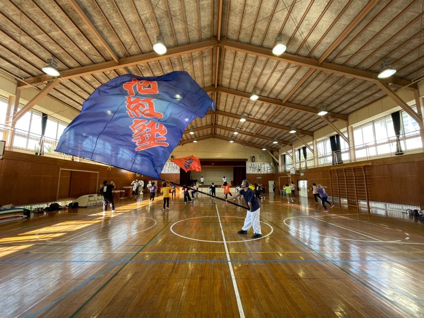 大旗の競演や、チームのオリジナル演舞を間に挟み