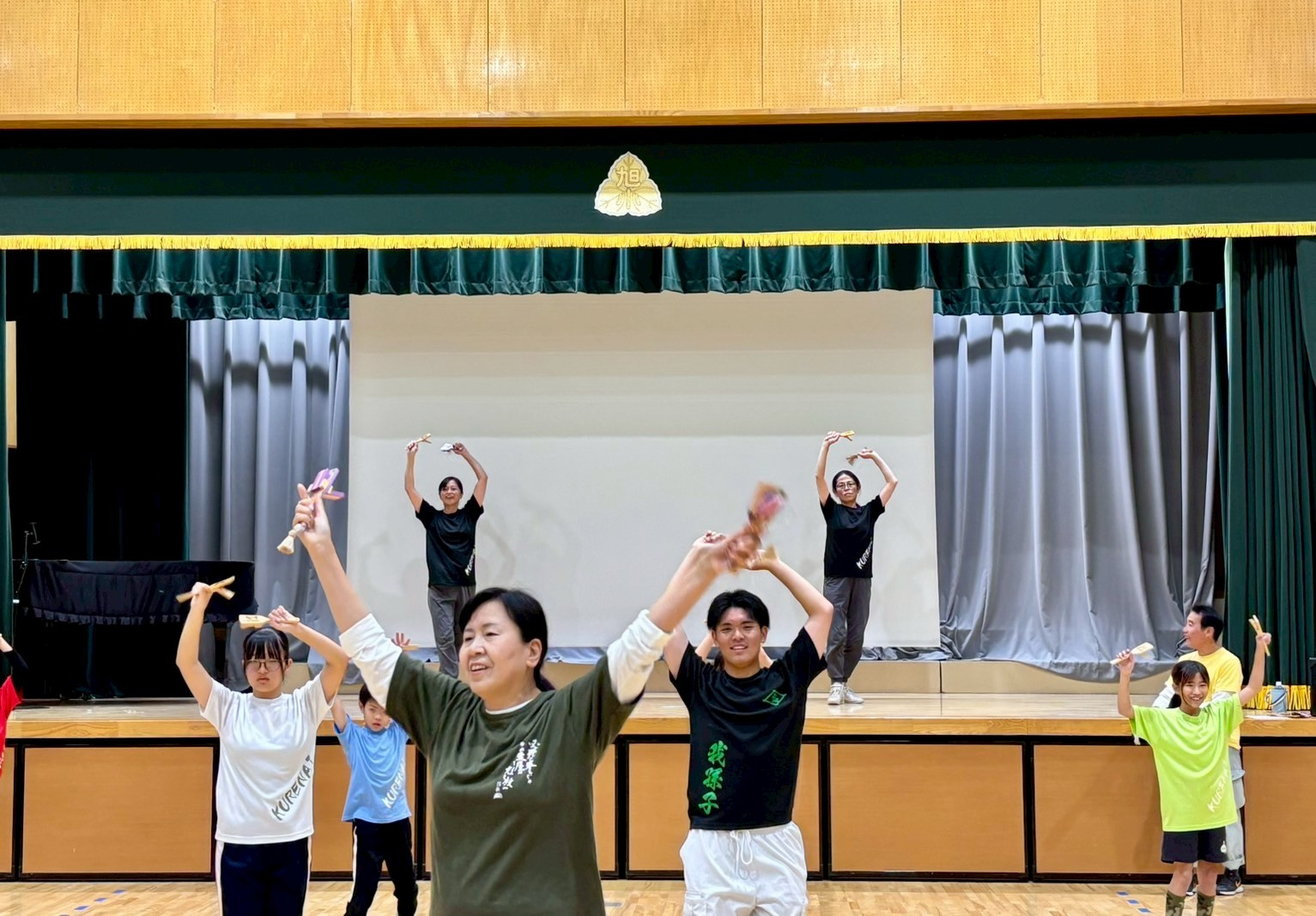 よさこいは初めての方、経験者の方、お子さんたち、他チームの踊り子さんや旗士さん、併せて25名の方に参加いただいて体験会では正調よさこいと高知家の唄をレクチャー。