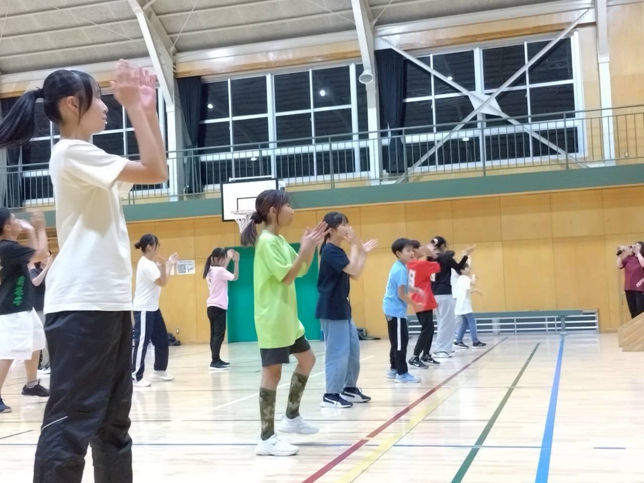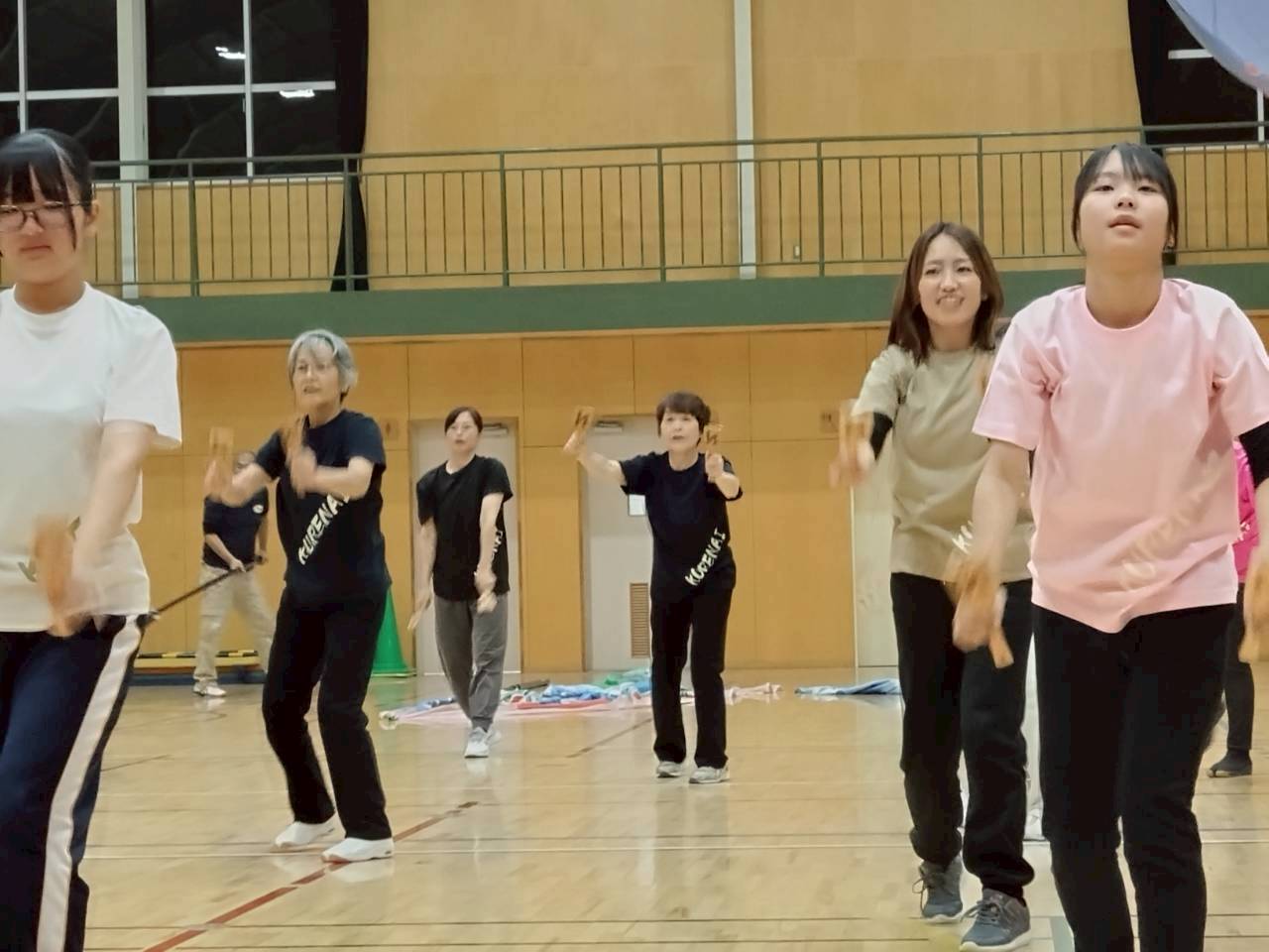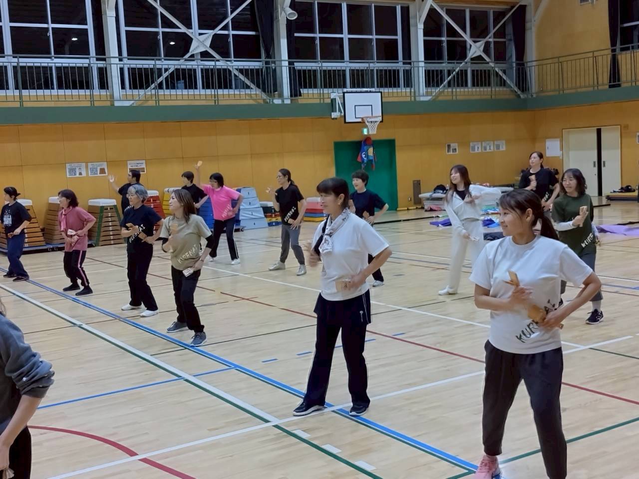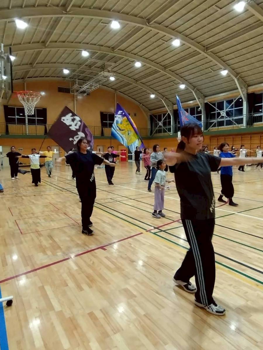 よさこいは初めての方、経験者の方、お子さんたち、他チームの踊り子さんや旗士さん、併せて25名の方に参加いただいて体験会では正調よさこいと高知家の唄をレクチャー。
